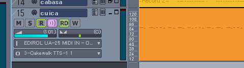 「トラック」の上で右クリックして【MIDIトラックの挿入(D)】から「ミディ・トラック」を追加し、名前を【cuica】に変更して【cuica】のパターンを録音(入力)します.