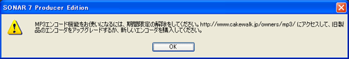 「MP3エンコード機能」が使用不能の「アラート・ウインドウ」が開きます.そのまま【OK】ボタンを押します.