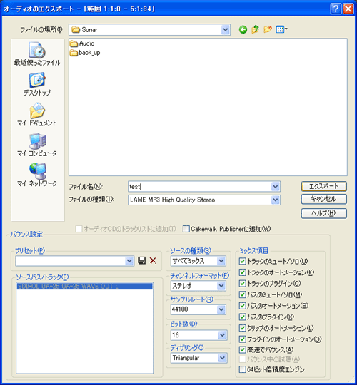 Sonar7 の上に有る【ファイル(F)】から【エクスポート(E)】【オーディオ(A)】と選択します.